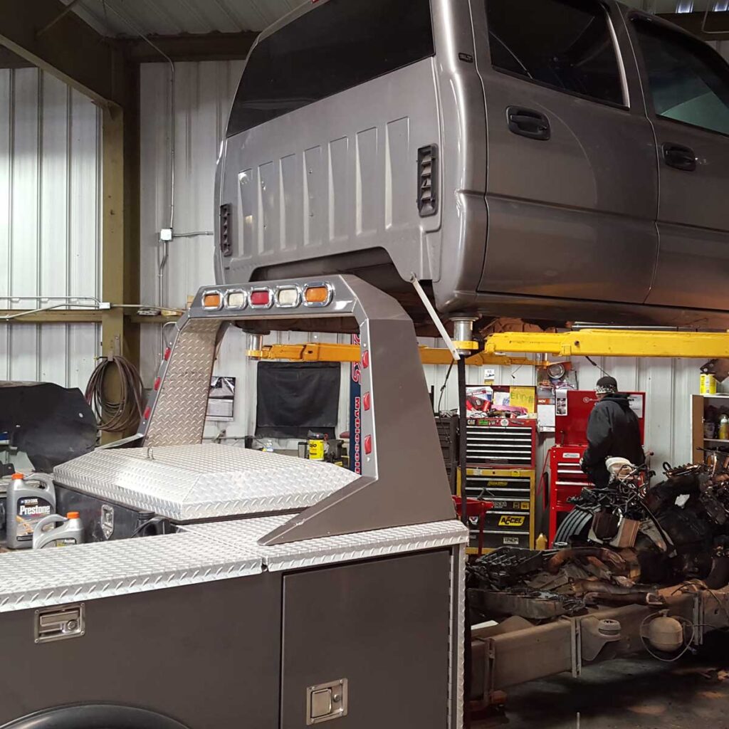 Heavy duty trucks, work trucks, and personal vehicles serviced in one shop.